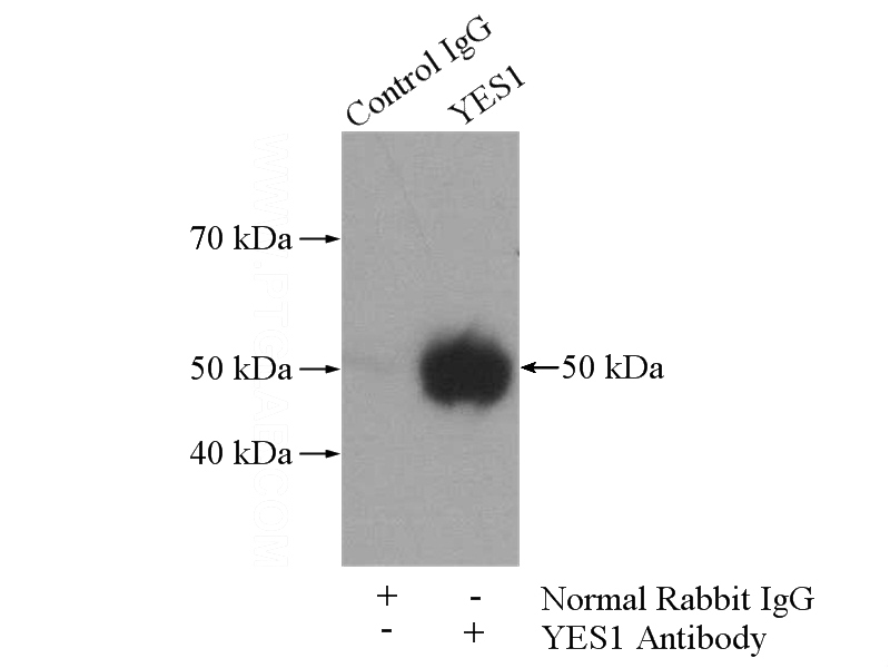 YES1-Specific Rabbit Polyclonal antibody. Positive IP detected in human placenta tissue. Positive WB detected in human placenta tissue, HeLa cells. Positive IHC detected in human colon tissue. Observed molecular weight by Western-blot: 50-60 kDa