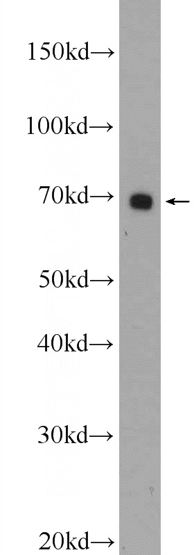 YTHDF3, also named as YTH domain-containing family protein 3, is a 585 amino acid protein, which contains 1 YTH domain. YTHDF3 specifically recognizes and binds N6-methyladenosine (m6A)-containing RNAs. M6A is a modification present at internal sites of mRNAs and some non-coding RNAs and plays a role in the efficiency of mRNA splicing, processing and stability. Our antibody 25537-1-AP specially reacts with YTHDF3 protein.