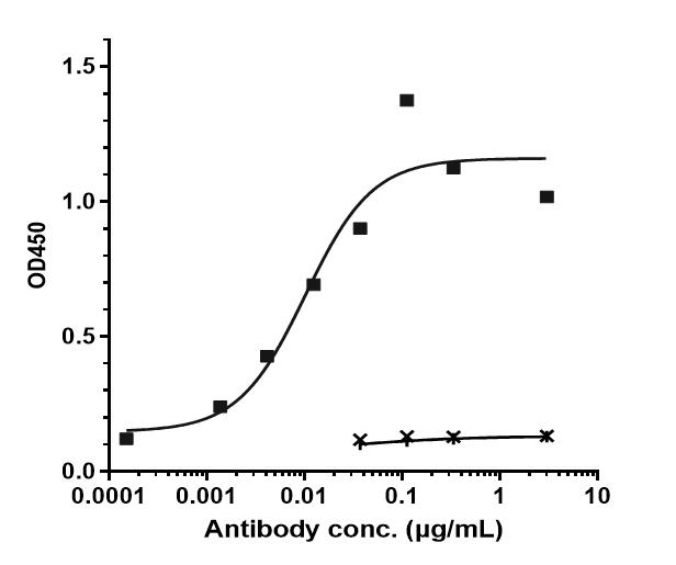 Immobilized human EGFR His at 2 ug/mL can bind Anti-ERBB1 / EGFR / HER1 Antibody (zalutumumab), EC50=0.01018 ug/mL.