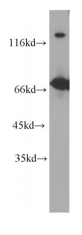 Jurkat cells were subjected to SDS PAGE followed by western blot with Catalog No:107547(ZAP70 antibody) at dilution of 1:1000