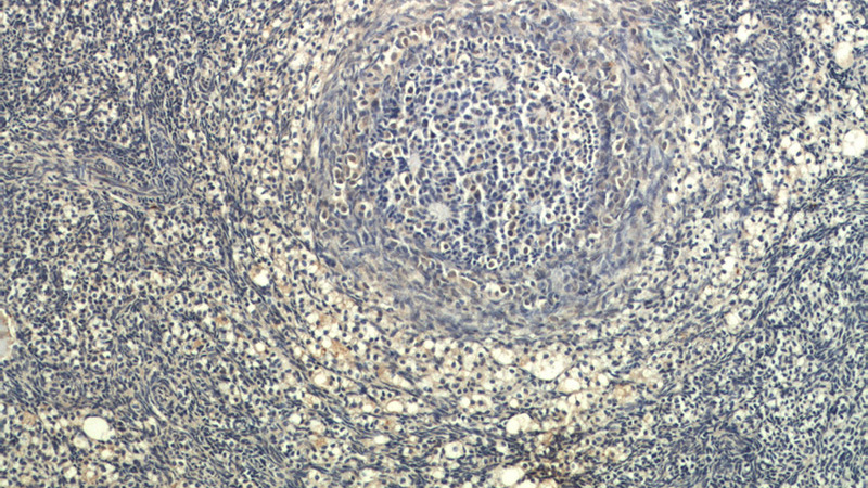 Immunohistochemical of paraffin-embedded human ovary using Catalog No:117050(GLP1 antibody) at dilution of 1:50 (under 10x lens)